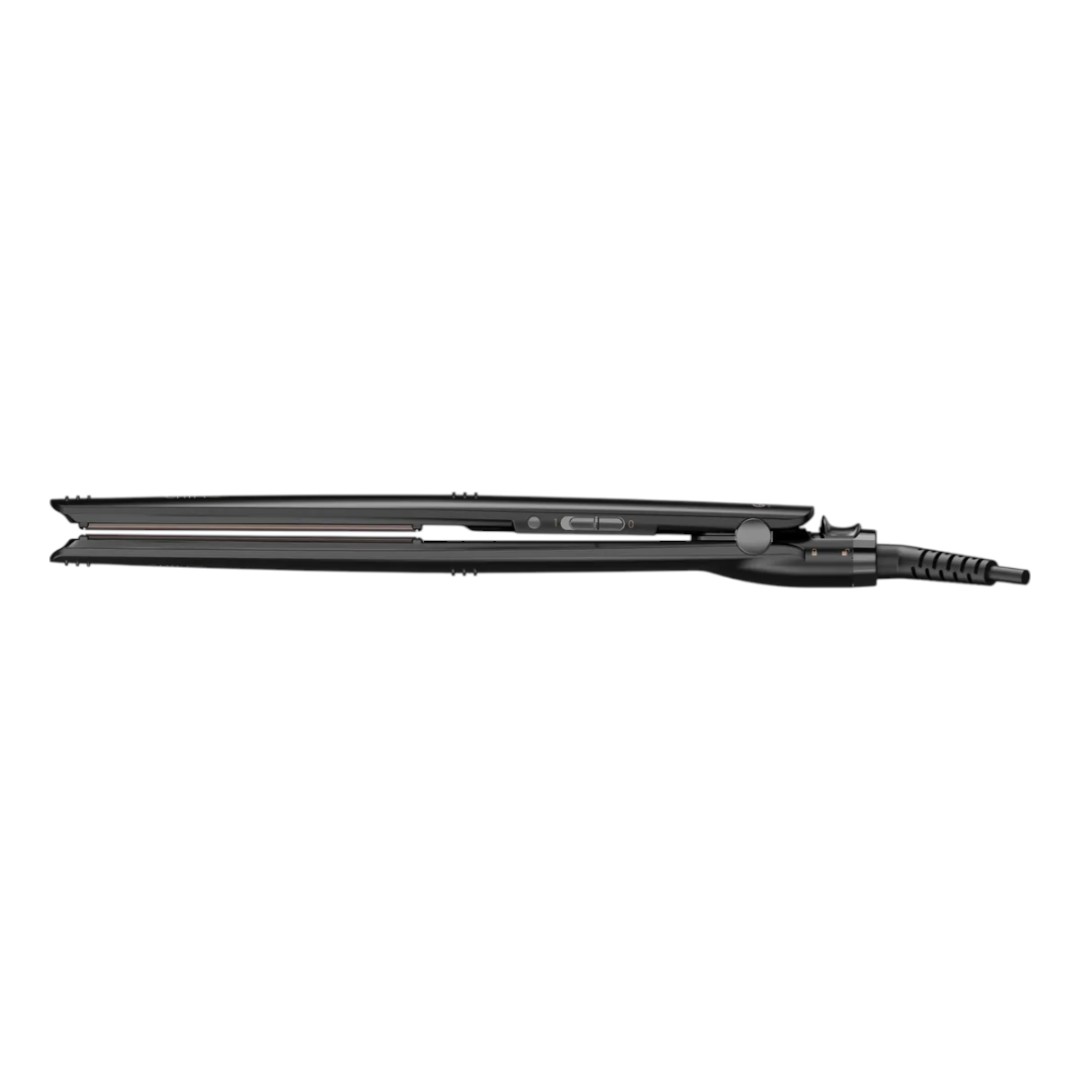 Diseño ultraplano y placas largas caracterizan esta plancha de pelo que te permite alisar perfectamente incluso las melenas más voluminosas.