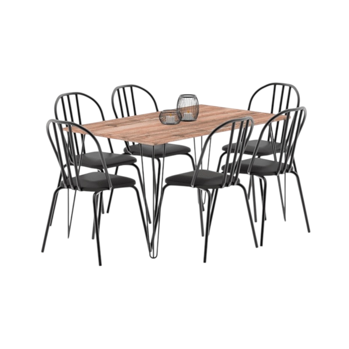 La mesa de la línea industrial es un producto logrado mediante la combinación de melamina símil madera color Atakama y las patas negras de hierro maciza.