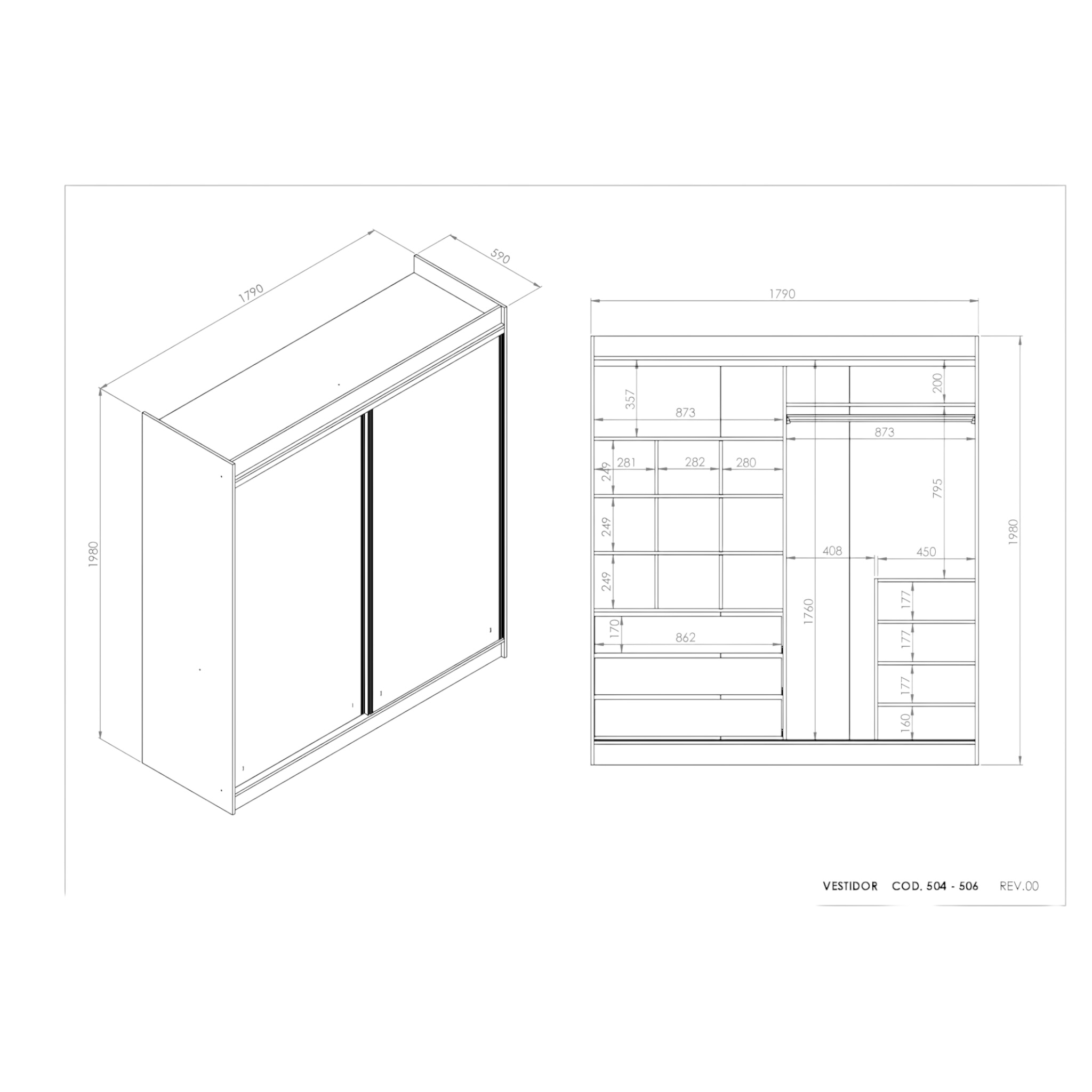 VESTIDOR 2 PUERTAS CORREDIZAS CON ESPEJO 180×200 CORSA