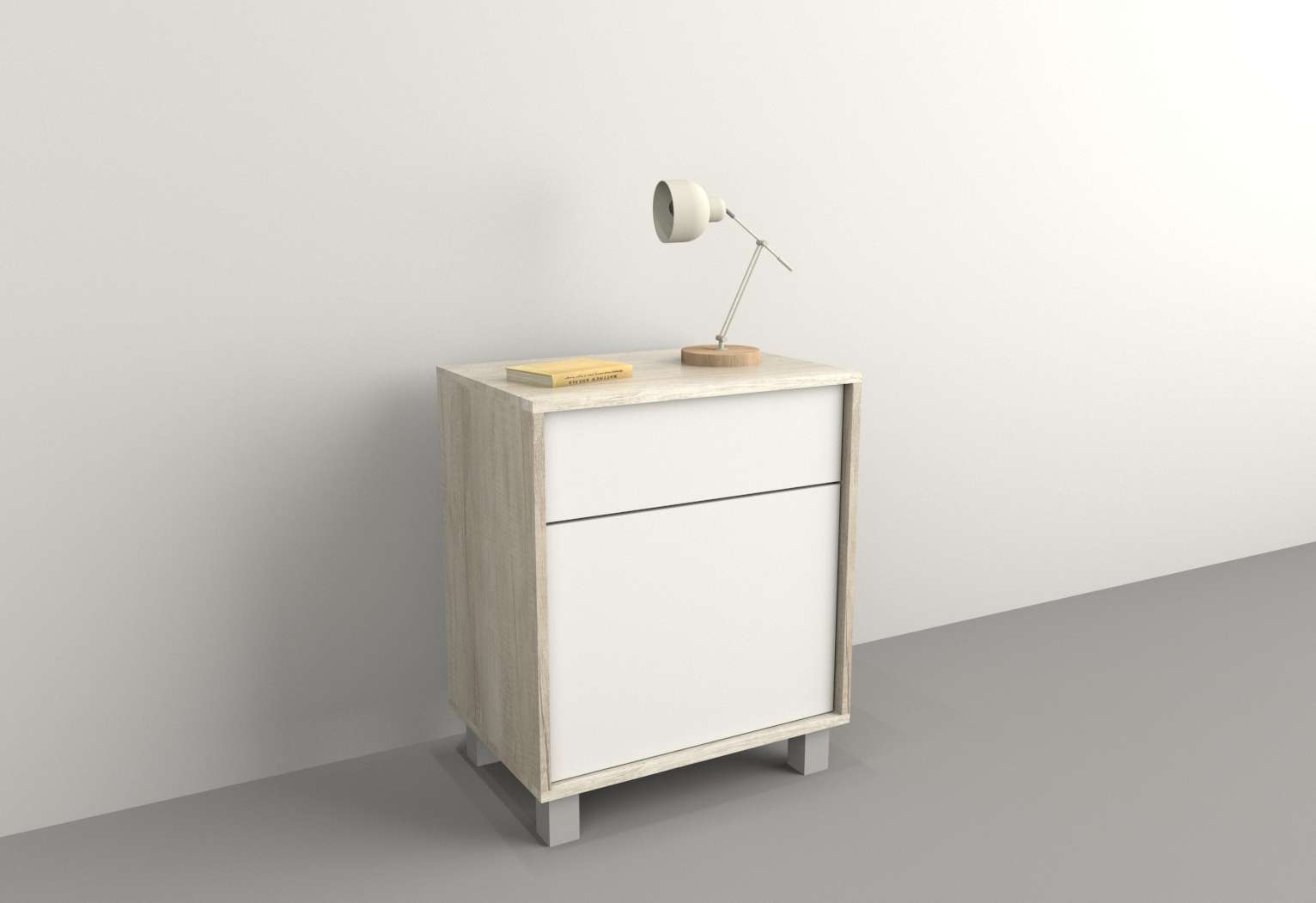 Mesa de luz 1 puerta y 1 cajón.
