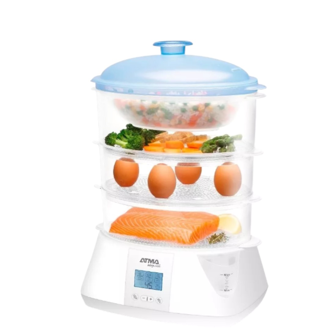 La Vaporiera con 3 Bandejas y Panel Digital 900W Atma te permite disfrutar de comidas saludables y deliciosas sin esfuerzo.